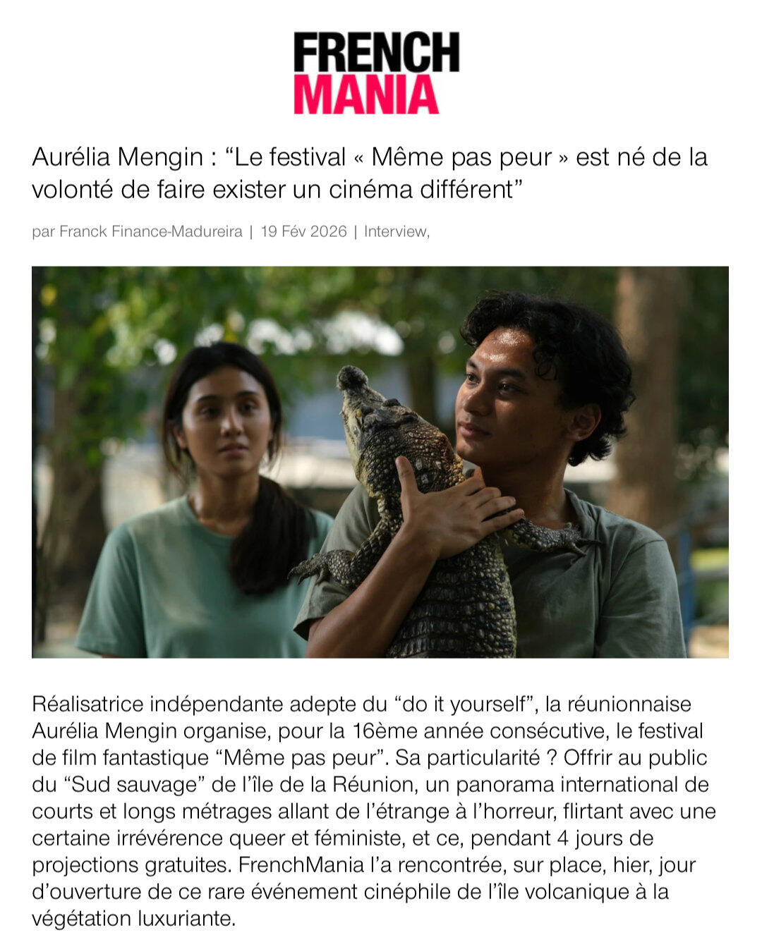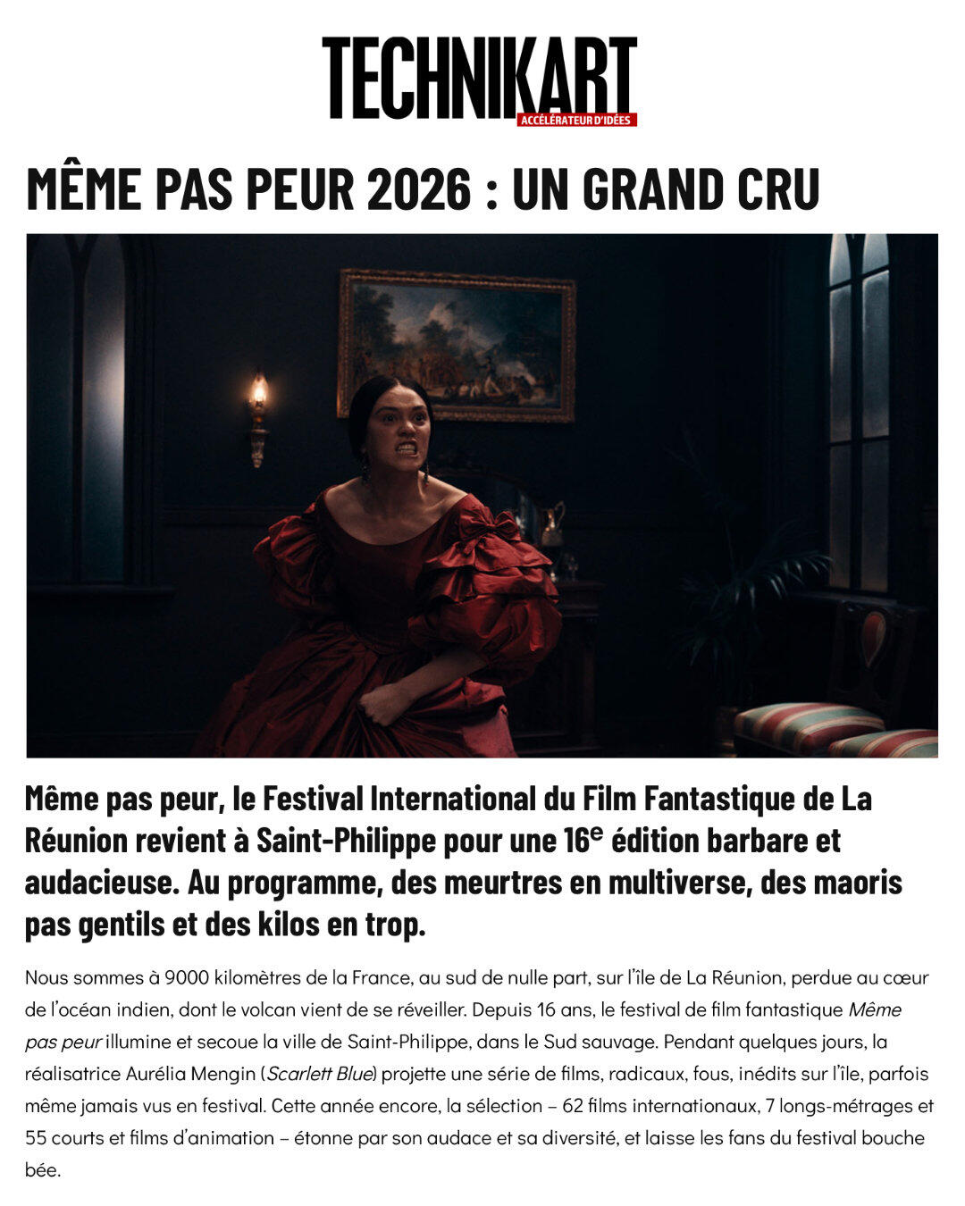 le Festival International du Film Fantastique de La Réunion sont ouvertes.Vous avez jusqu'au 30 NOVEMBRE 2026 pour envoyer votre film sur notre plateforme Filmfreeway